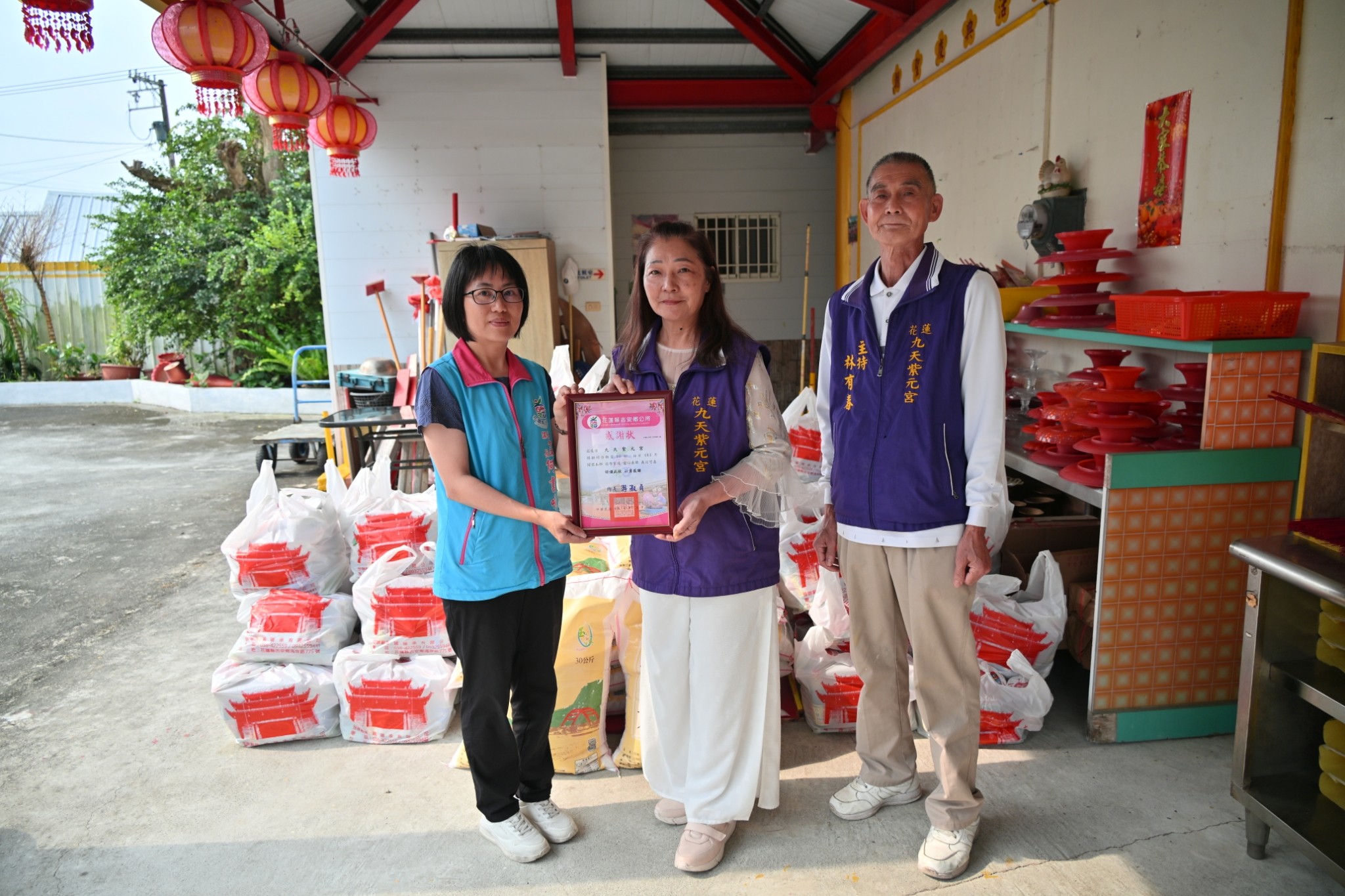吉安鄉九天紫元宮捐助物資照顧弱勢 鄉長游淑貞感謝宗教濟世助人
