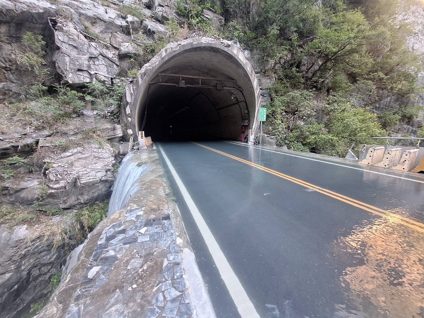 因應燕子口堰塞湖致立霧溪水位持續上漲,台9線太魯閣大橋路段提醒用路人注意道路通阻資訊