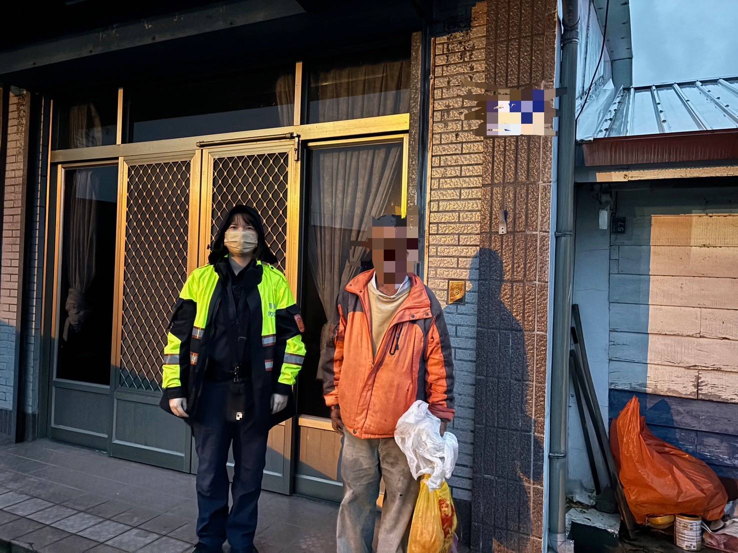 寒風驟降、冷雨襲擊,富里警暖心護送淋雨翁回家