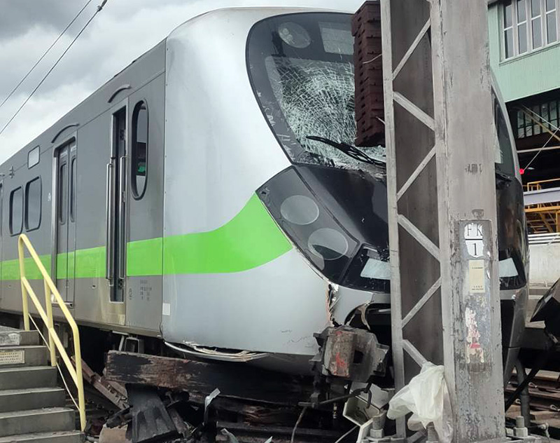 EMU900在花蓮機務段撞上電桿