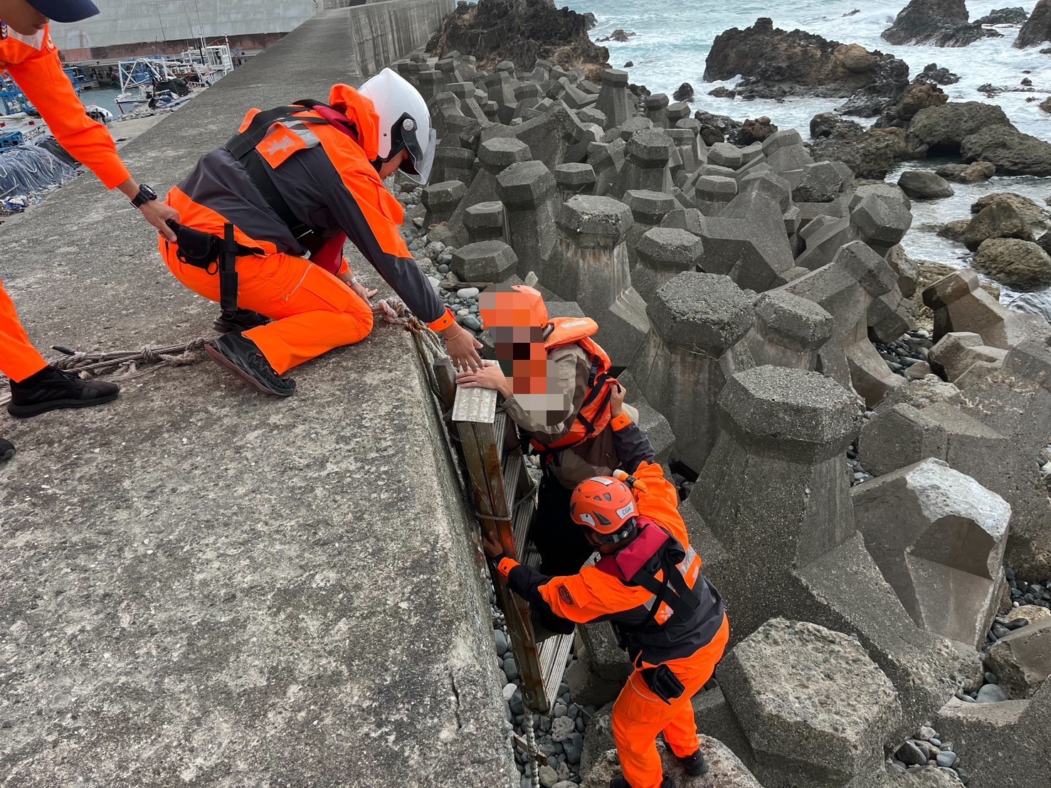 男子撿鞋子困海堤消波塊 海巡即刻救援