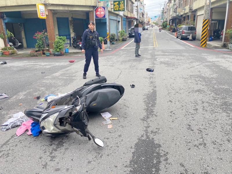 花蓮市中山路驚現車禍意外 電動摩托車擦撞後突燃起大火