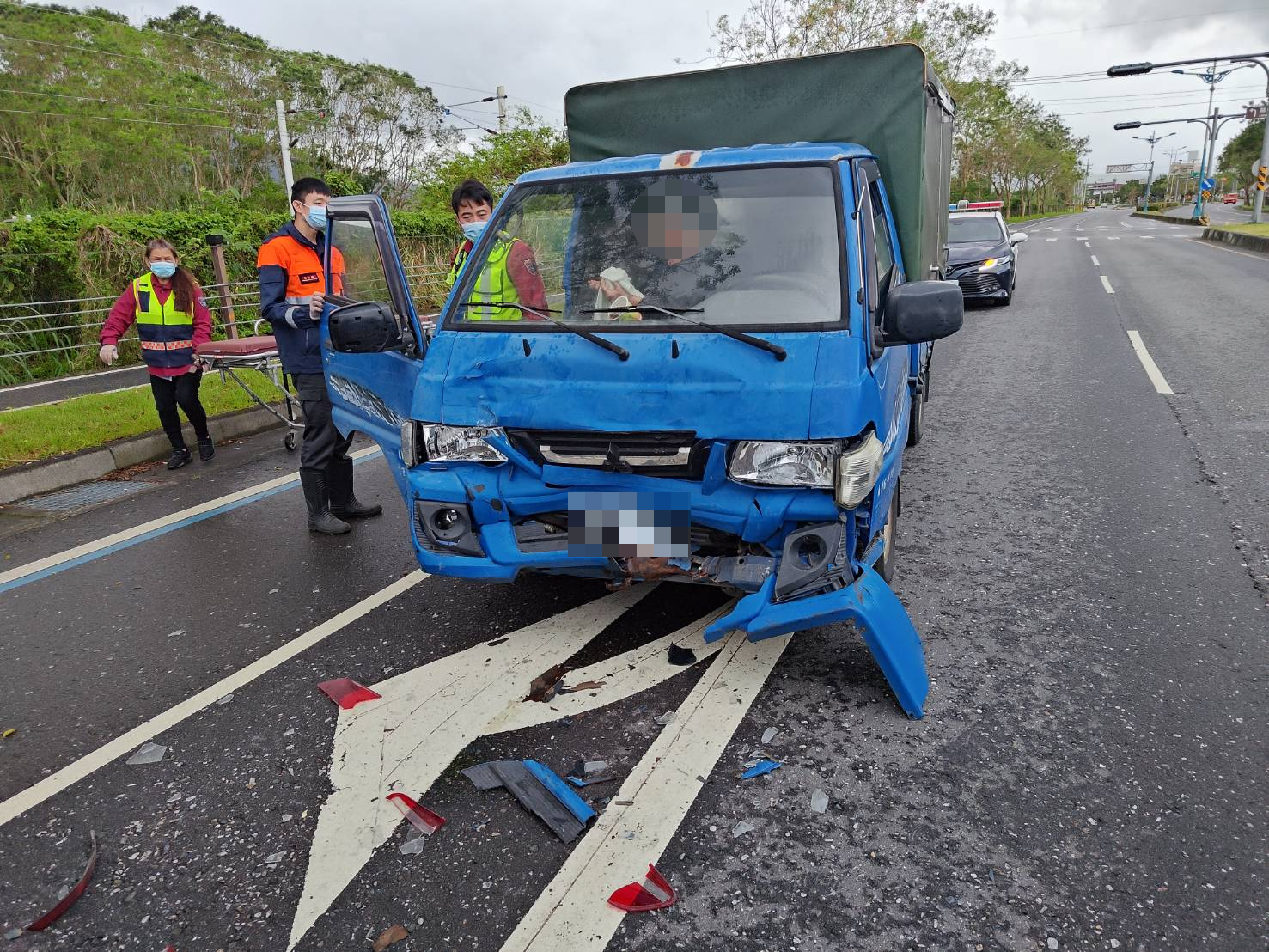 自小貨撞上等紅燈小客車 1人輕傷