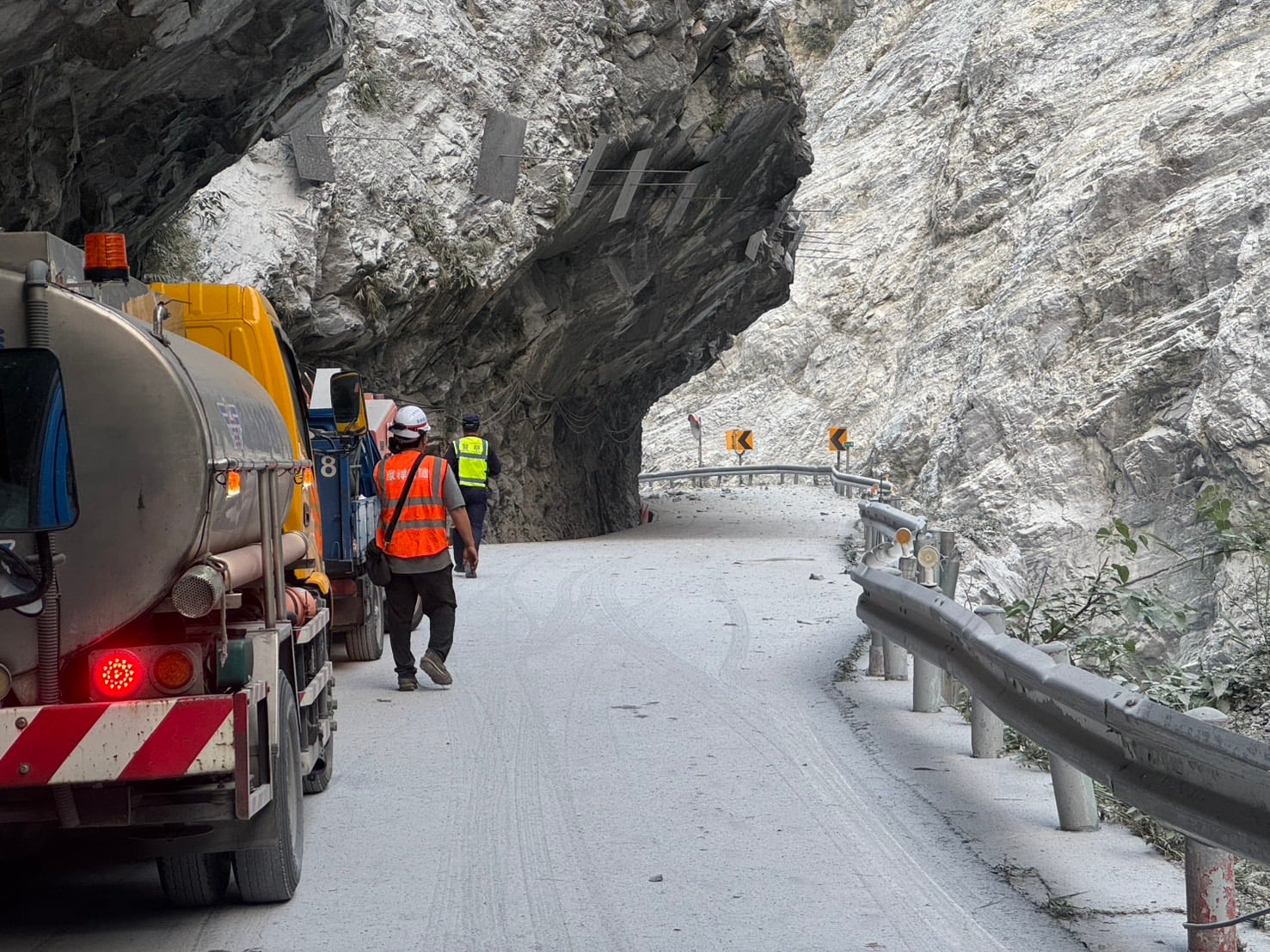 中橫流芳橋路段落石阻路 一度封閉搶通、受困車輛平安脫困