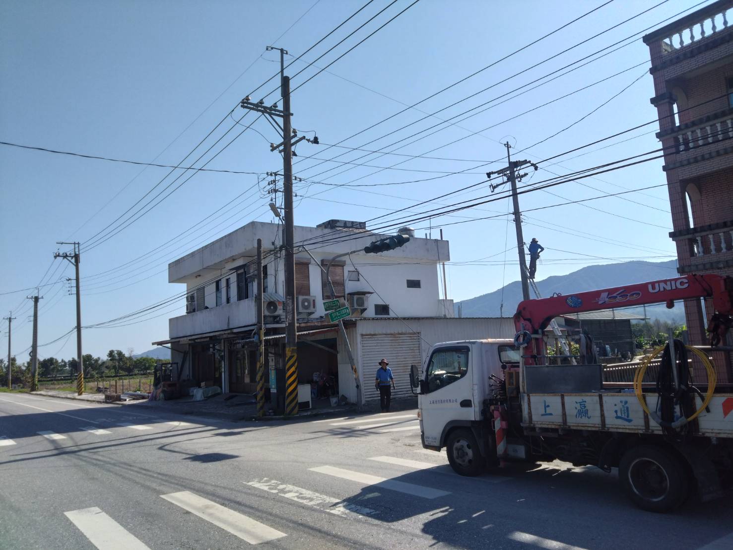 豐坪路車禍導致號誌桿倒塌 廠商緊急搶修中,請小心行車