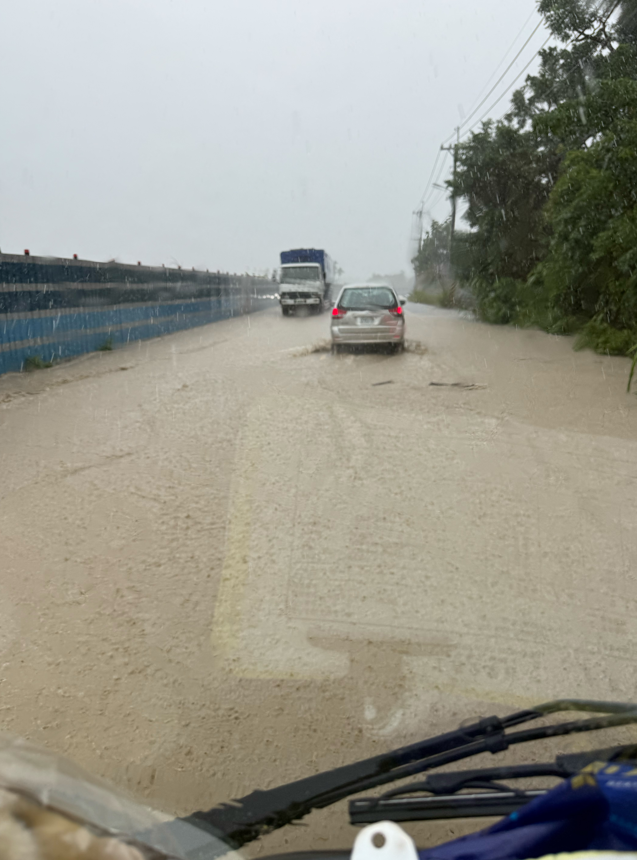 台九線「安通路段」積水汪洋一片 土石流淹輪胎