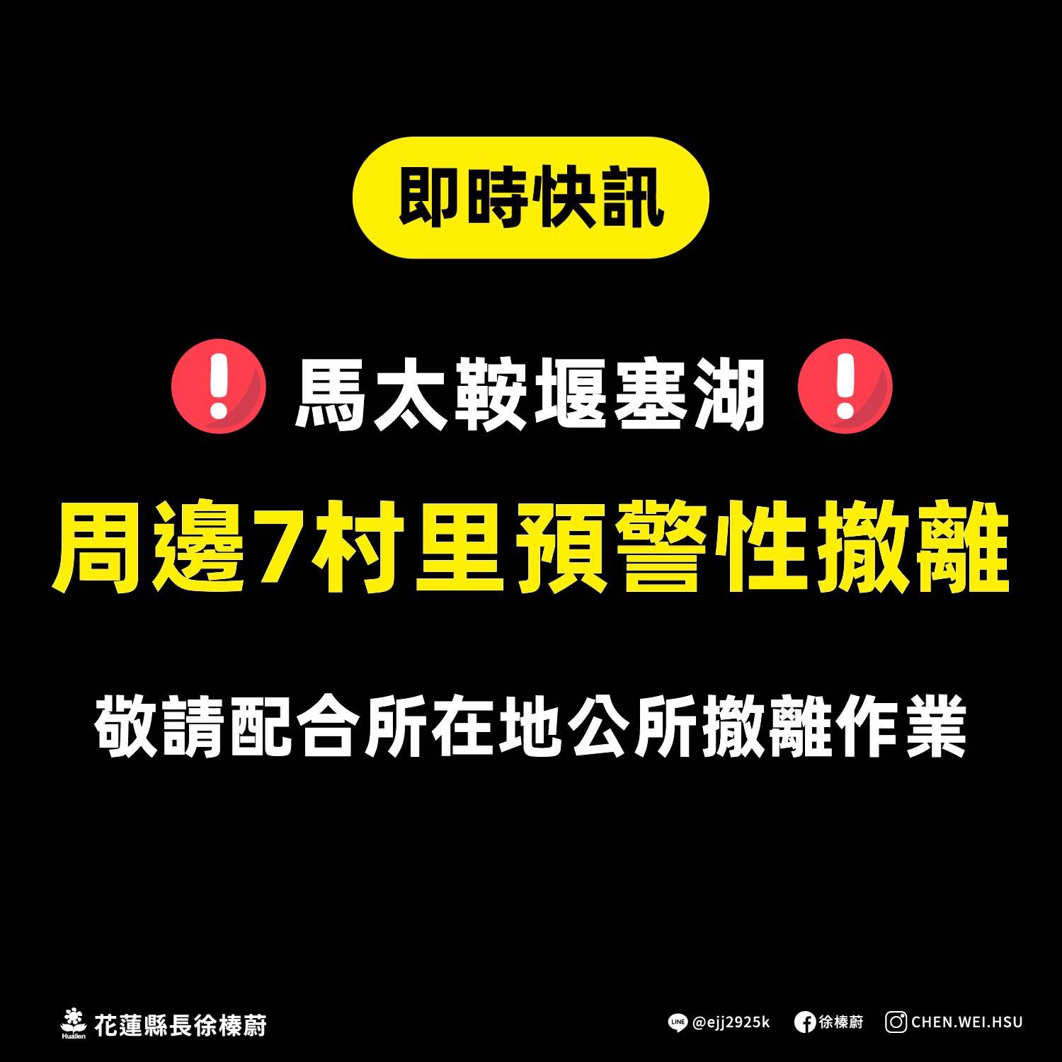 快訊/ 馬太鞍堰塞湖周邊7村里 啟動「預警性撤離」