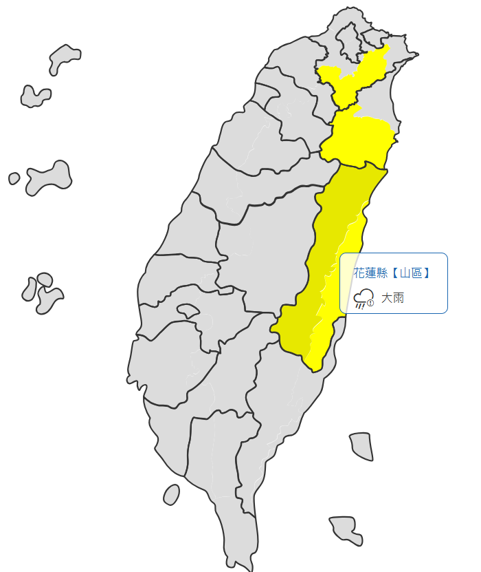 大雨特報! 花蓮地區有大雨發生機率