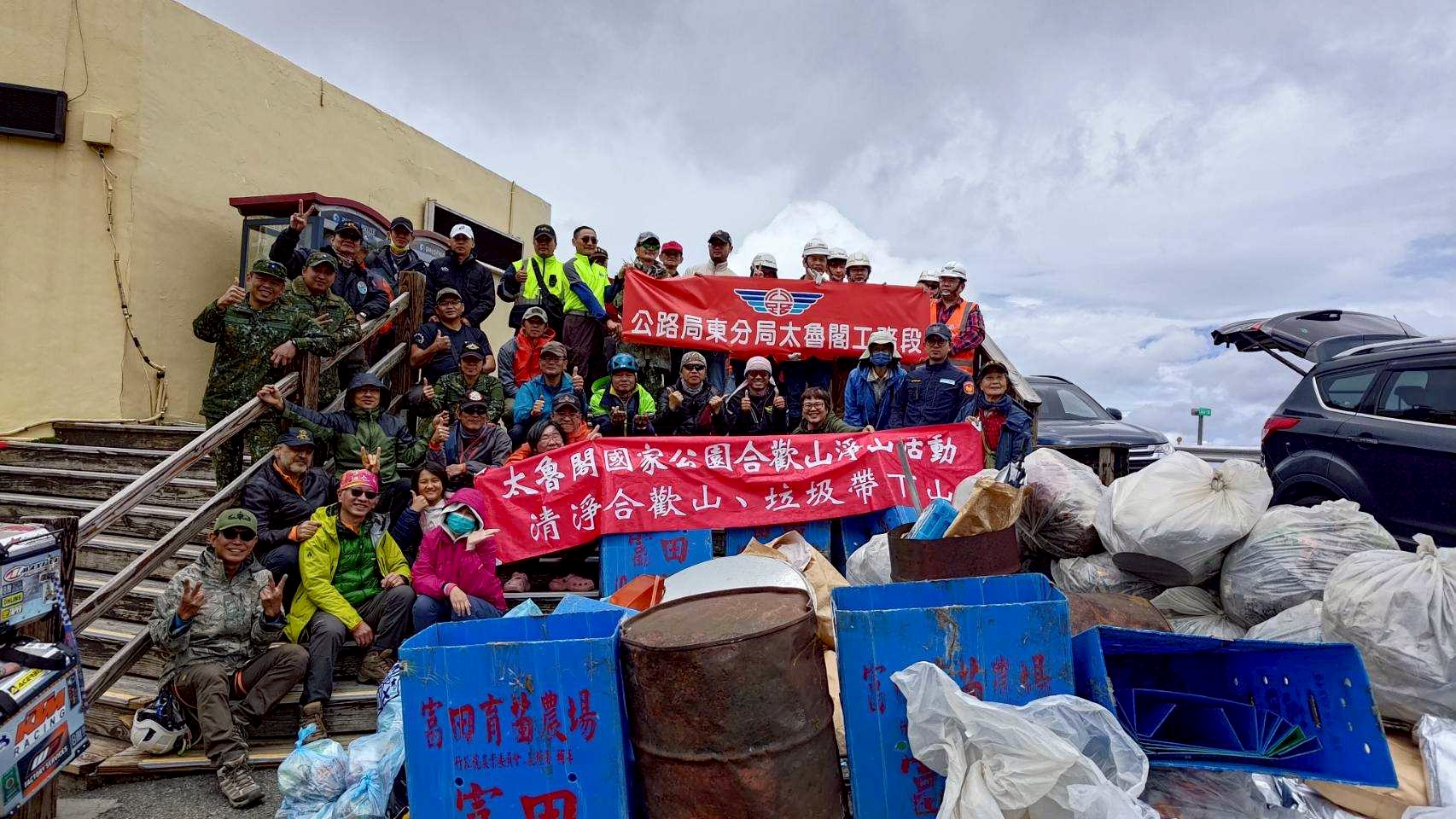 114年春季 合歡山聯合淨山活動 公、民機構員工及志工垂降 清出200多包垃圾