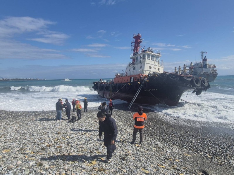 「通鴻輪」脫淺後 拖船「臺港13205」也於下午脫淺