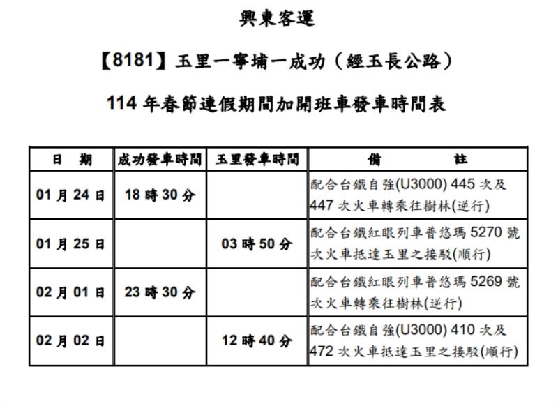 興東客運配合台鐵列車春節疏運班次出爐