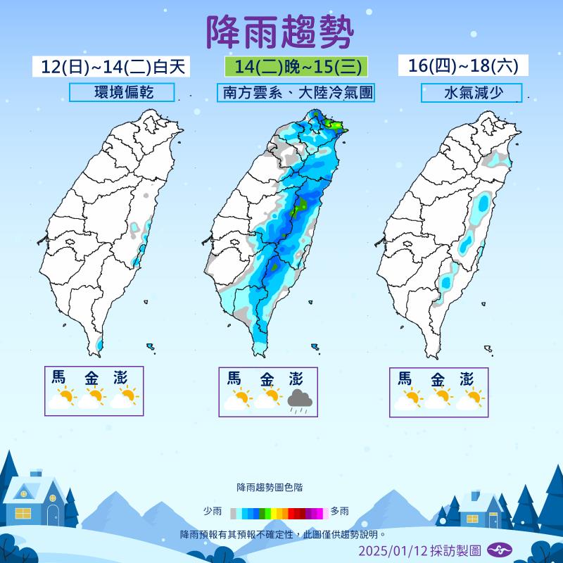 氣象情資顯示,今(12)日夜間台14甲線高海拔路段有局部路面結冰機率,今(12)日18時起,台14甲線翠峰至大禹嶺(18K~41.5K)路段預警性封閉