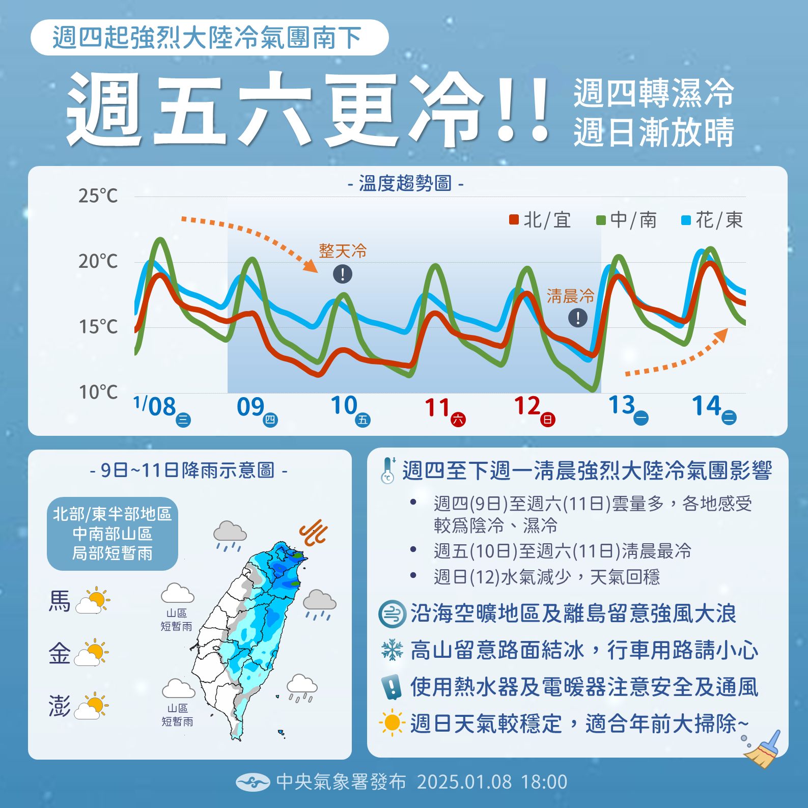 強烈冷氣團明起報到! 週五至週六晨最冷 將有10度以下低溫發生