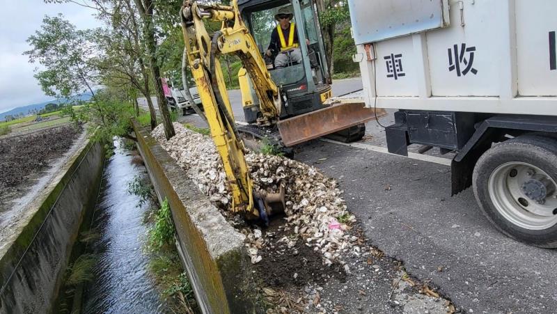 華城路旁遭惡意棄倒約1.75噸牡蠣殼