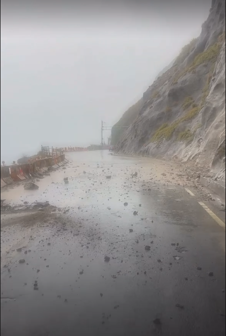 民眾拍下台9丁和平隧道口「落石群」請用路人避開危險