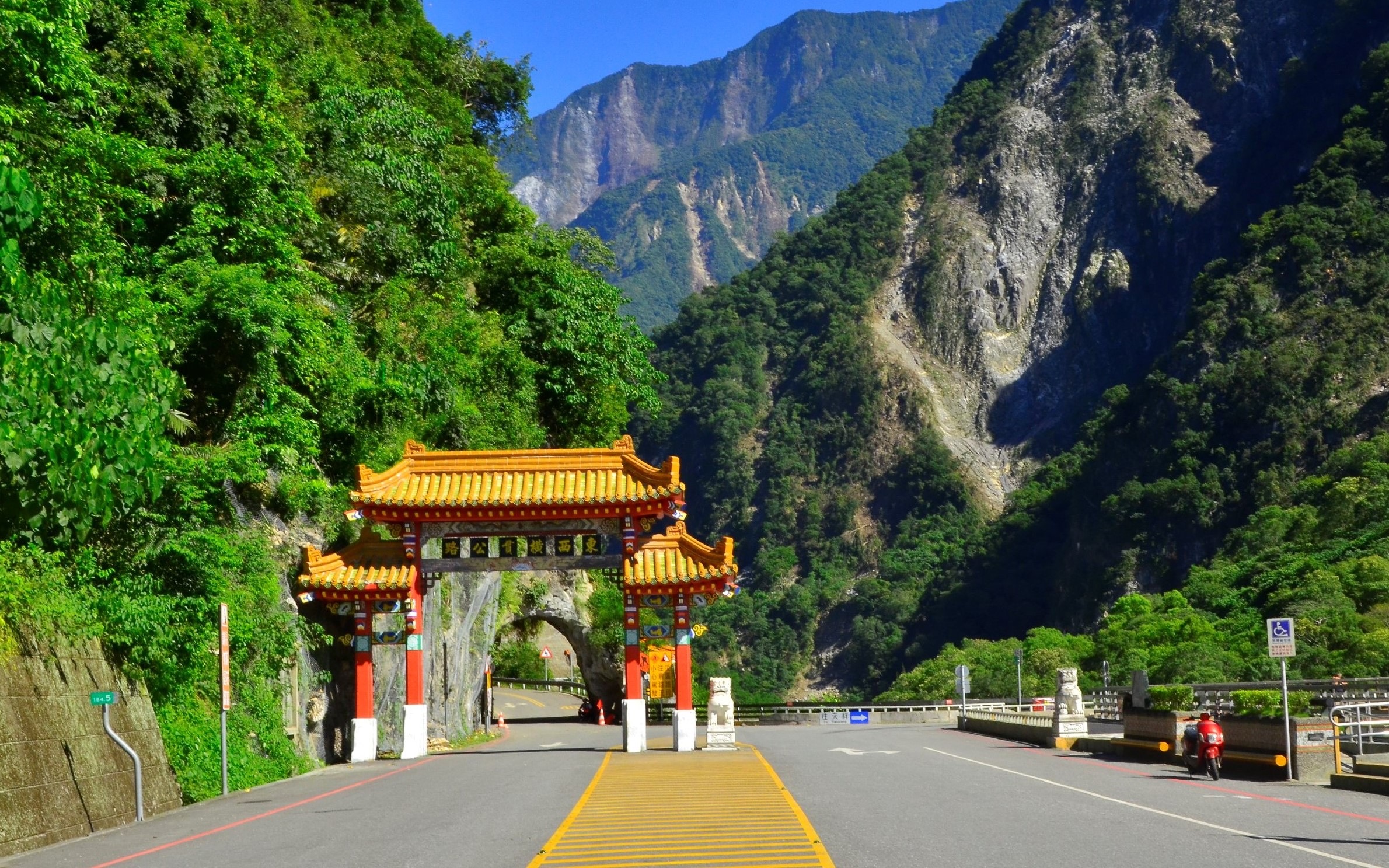 康芮颱風災後清運大量枝葉 卡車不慎碰撞 太魯閣牌坊受損 太管處將積極修復