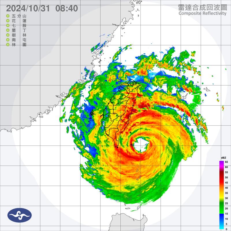 花東需留意眼牆上的「強風驟雨」!! 康芮核心正在進入東部陸地