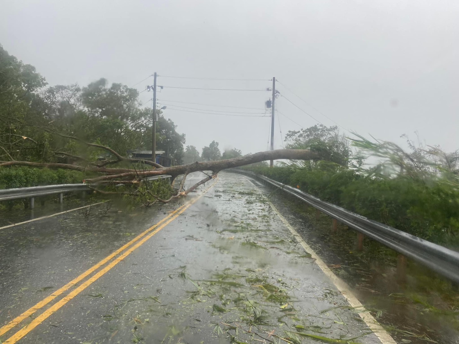 康芮颱風肆虐!南海五街路樹倒塌、電線桿橫倒,車輛翻覆阻斷交通