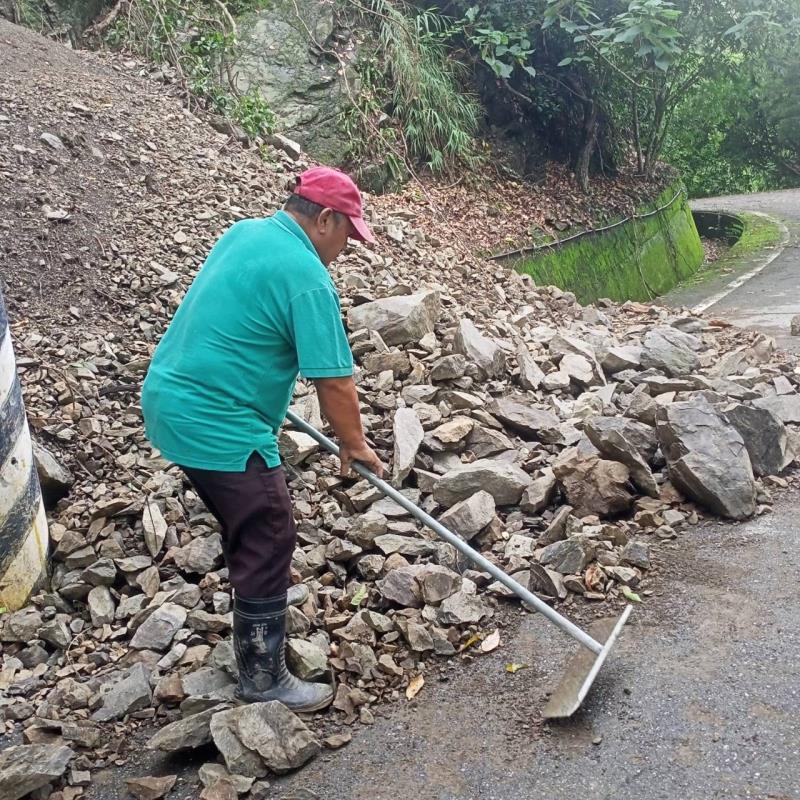 安通連日雨勢土石崩落 部落頭目夫婦清理路面