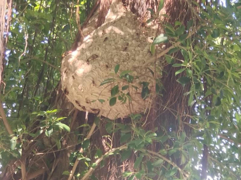 玉里鎮內赫見「虎頭蜂窩」樹上掛著比籃球還大 鎮公所立即摘除