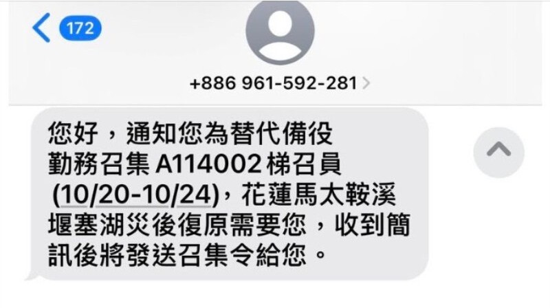 「後備軍人召集簡訊」是誤發
