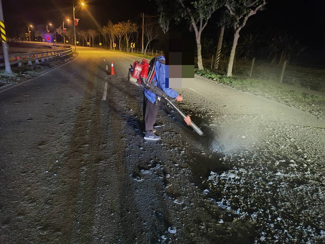 夜間台9線鳳林段車道「砂石散落滿地」 ! 鳳警熱心協助清除